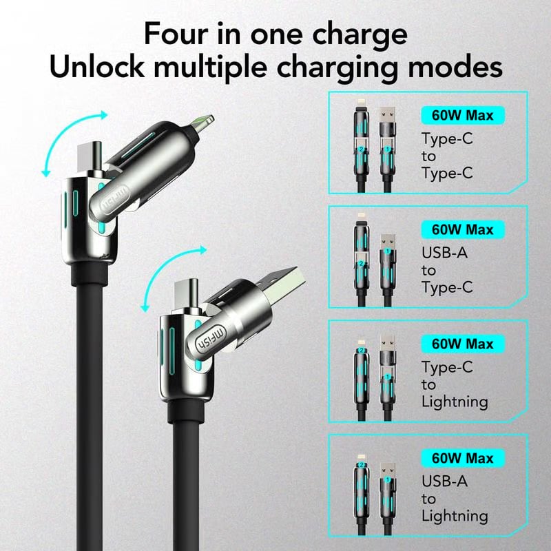 Charge your devices faster than ever with the MFish 4in-1 USB C Cable 60W.